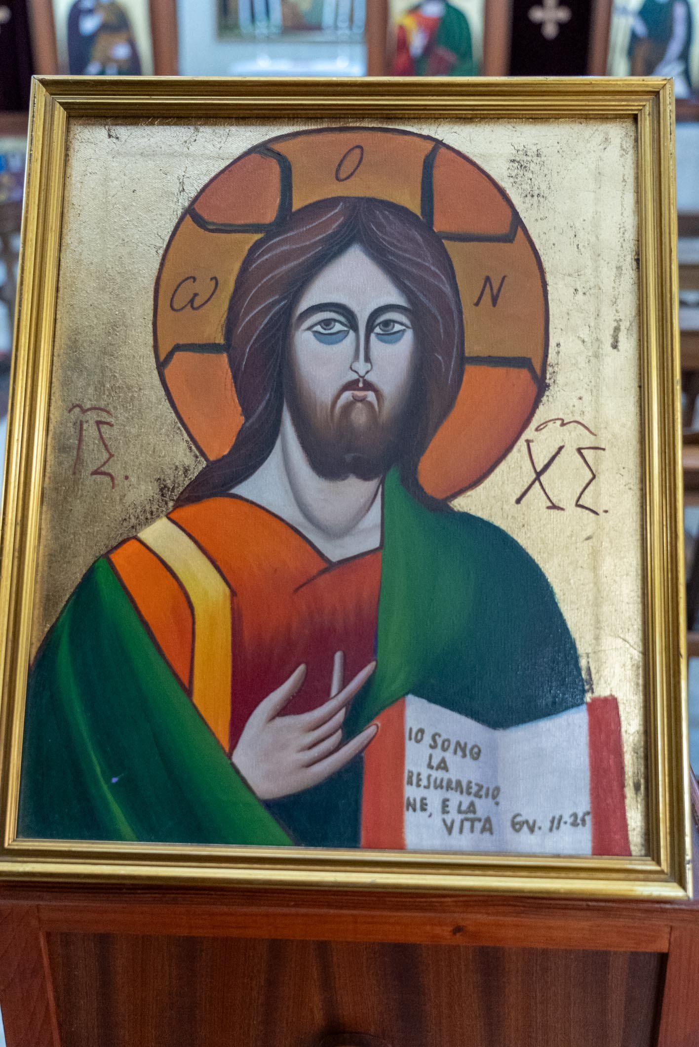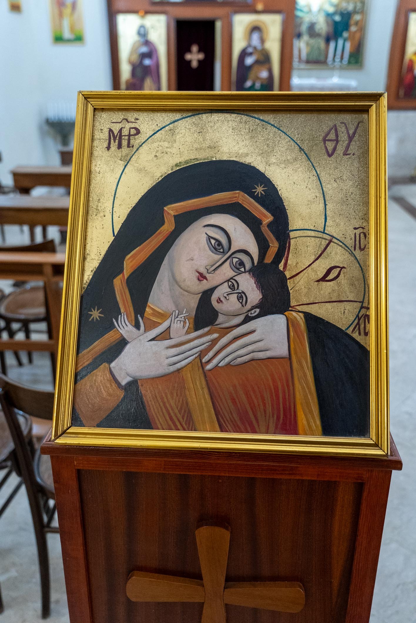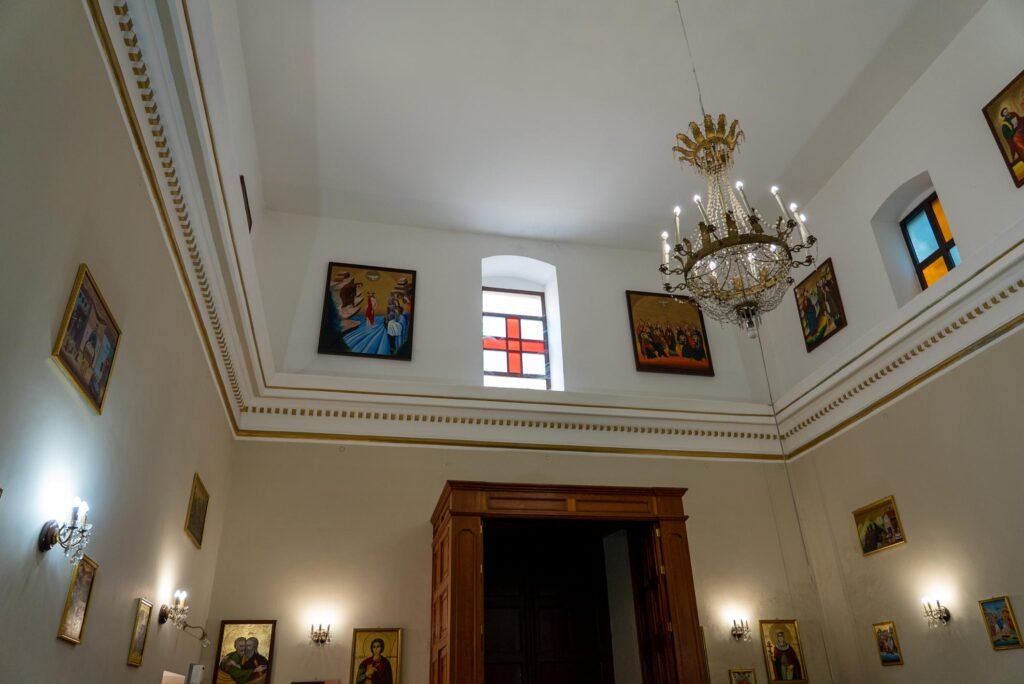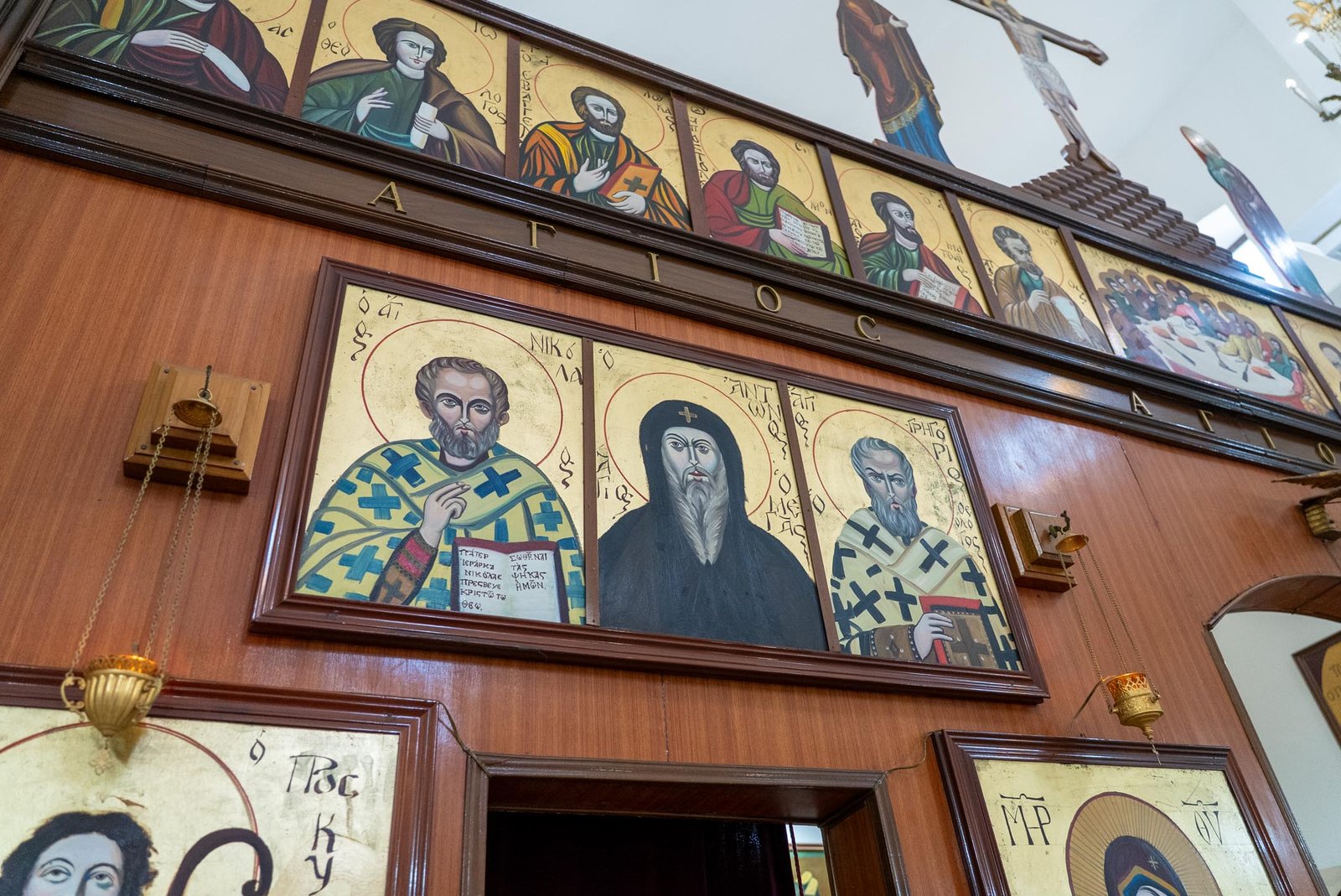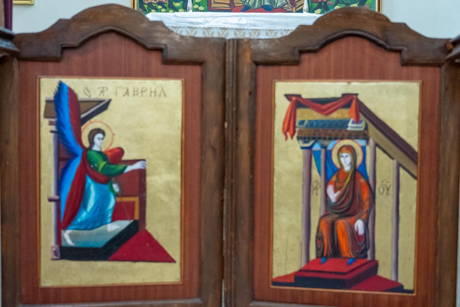 <p>Ma è varcando la soglia che si entra in un luogo che parla la lingua antica della fede bizantina. La chiesa, infatti, è sempre stata officiata secondo il rito greco, una tradizione che ancora oggi affascina per la sua sacralità e per la ricchezza simbolica delle celebrazioni. L’interno presenta una struttura tipica delle chiese di rito orientale: un’unica navata conduce al presbiterio quadrangolare, separato da una splendida iconostasi, vero e proprio diaframma sacro tra il mondo terreno e quello divino. Le pareti, sobrie e intonacate, sono arricchite da un semplice ma raffinato fregio modanato che corre lungo le superfici, accompagnando lo sguardo del visitatore verso l’altare.</p>