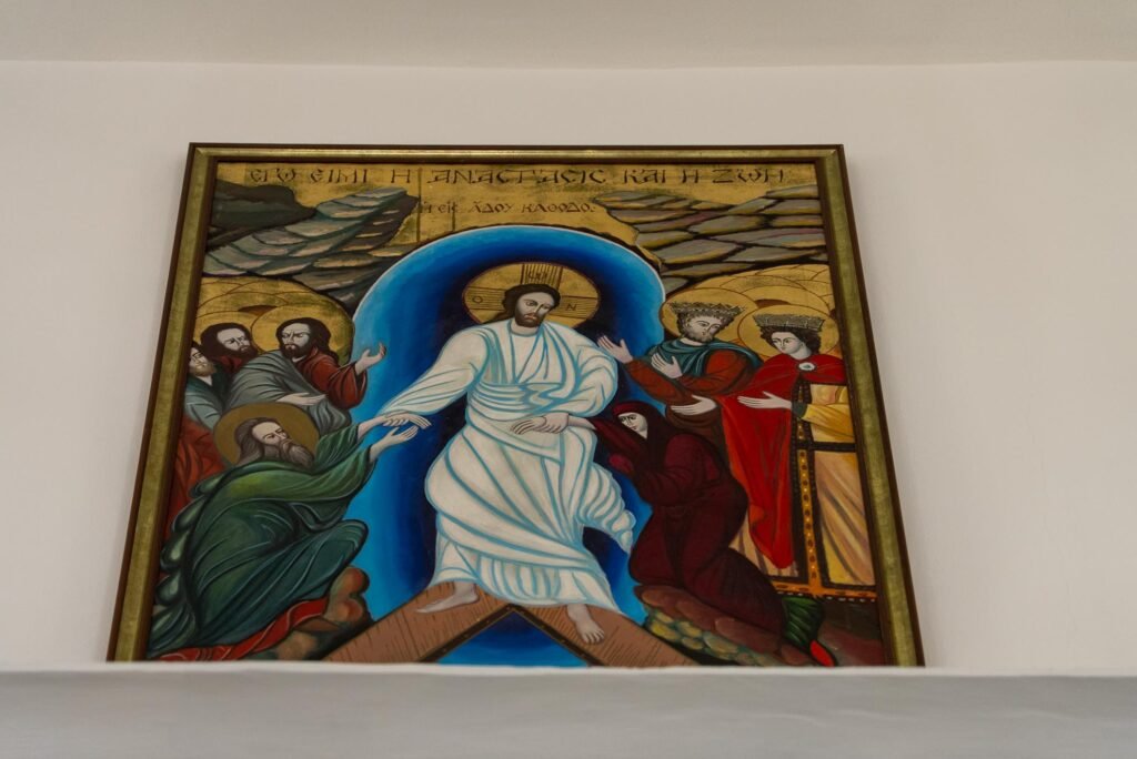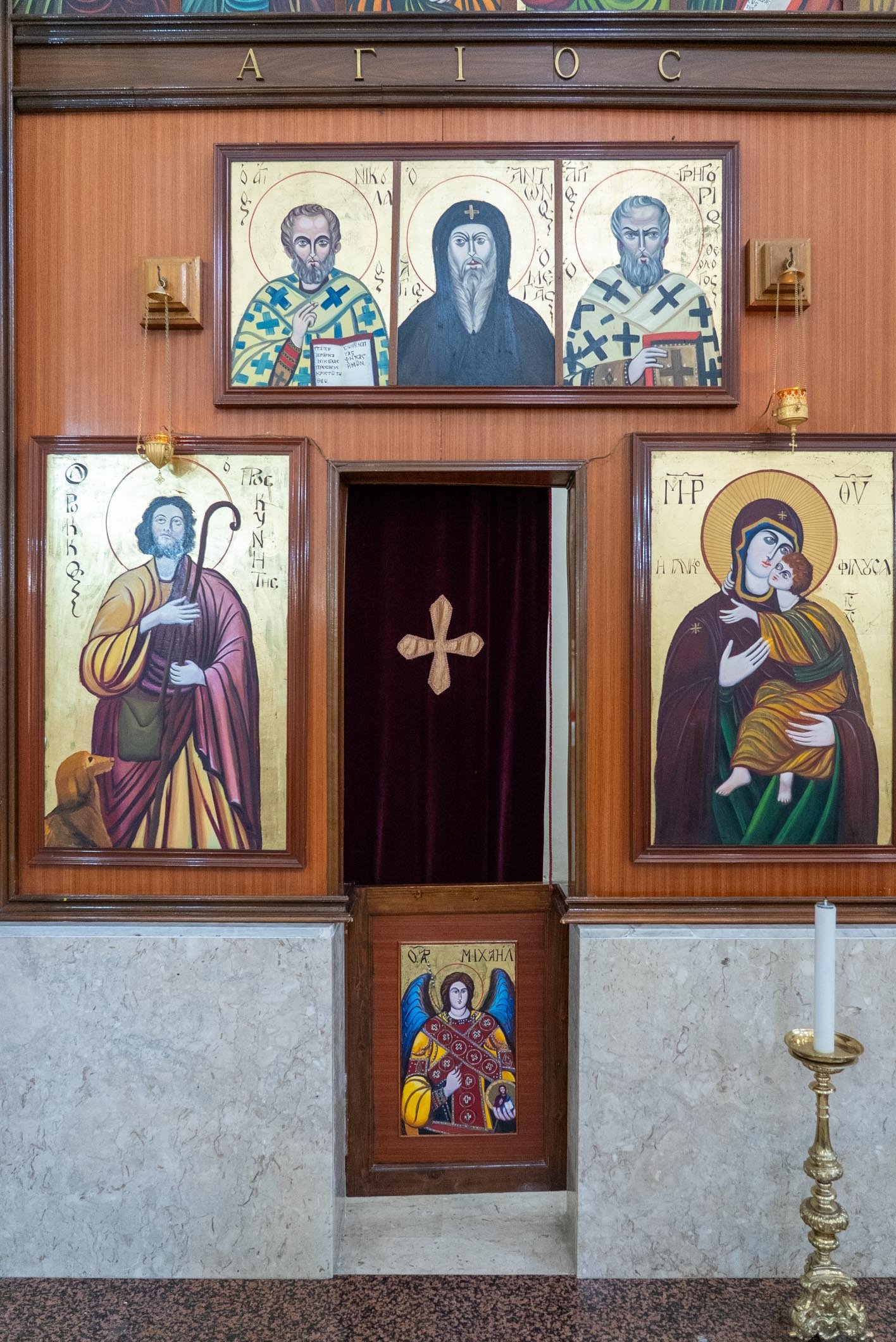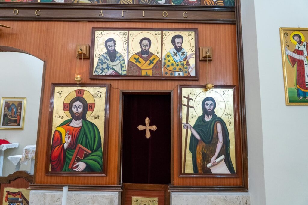 <p>Un ruolo centrale è giocato dall’iconostasi, le cui icone furono realizzate con grande maestria dal monaco basiliano di Mezzojuso, Fratel Pietro Vittorino. Ogni immagine sacra dipinta è un richiamo al mistero della fede, ma anche un omaggio alla tradizione bizantina che permea l’anima del paese. In passato, si conservavano qui tre importanti dipinti: uno raffigurante San Rocco, protettore della chiesa e del quartiere; uno del Santissimo Crocifisso; e un terzo della Madonna. Gli altari laterali erano invece dedicati alla Madonna di Trapani e alla Madonna dell’Itria, a testimonianza del profondo legame tra devozione mariana e cultura locale.</p>