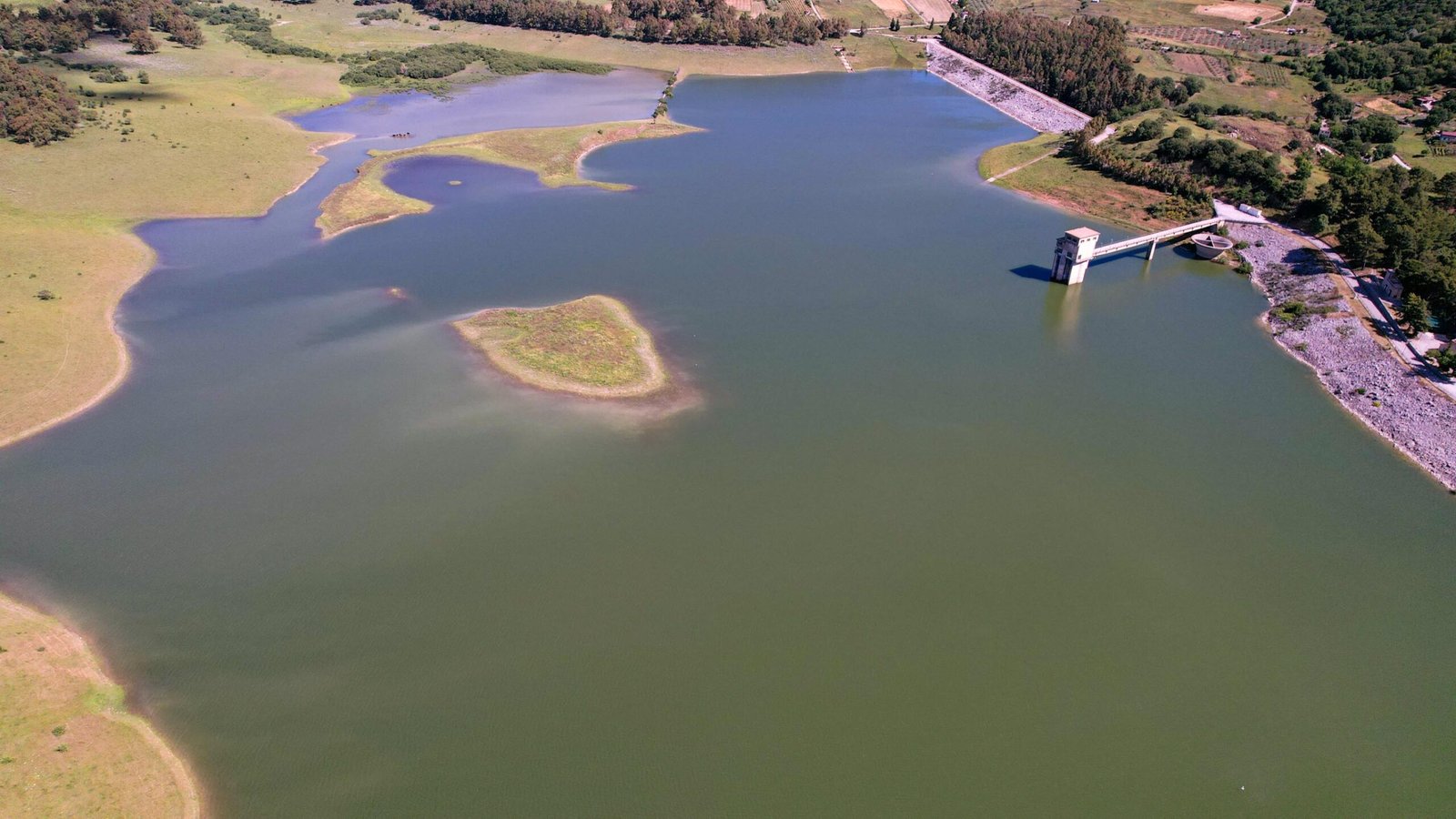 Nonostante sia un bacino artificiale, il lago si integra perfettamente nel paesaggio, tanto da sembrare un’opera della natura. Viene alimentato e attraversato dal torrente Scanzano, affluente del fiume Eleuterio, che funge sia da immissario che da emissario, creando un delicato equilibrio idrico che dà vita a un ecosistema rigoglioso e dinamico.