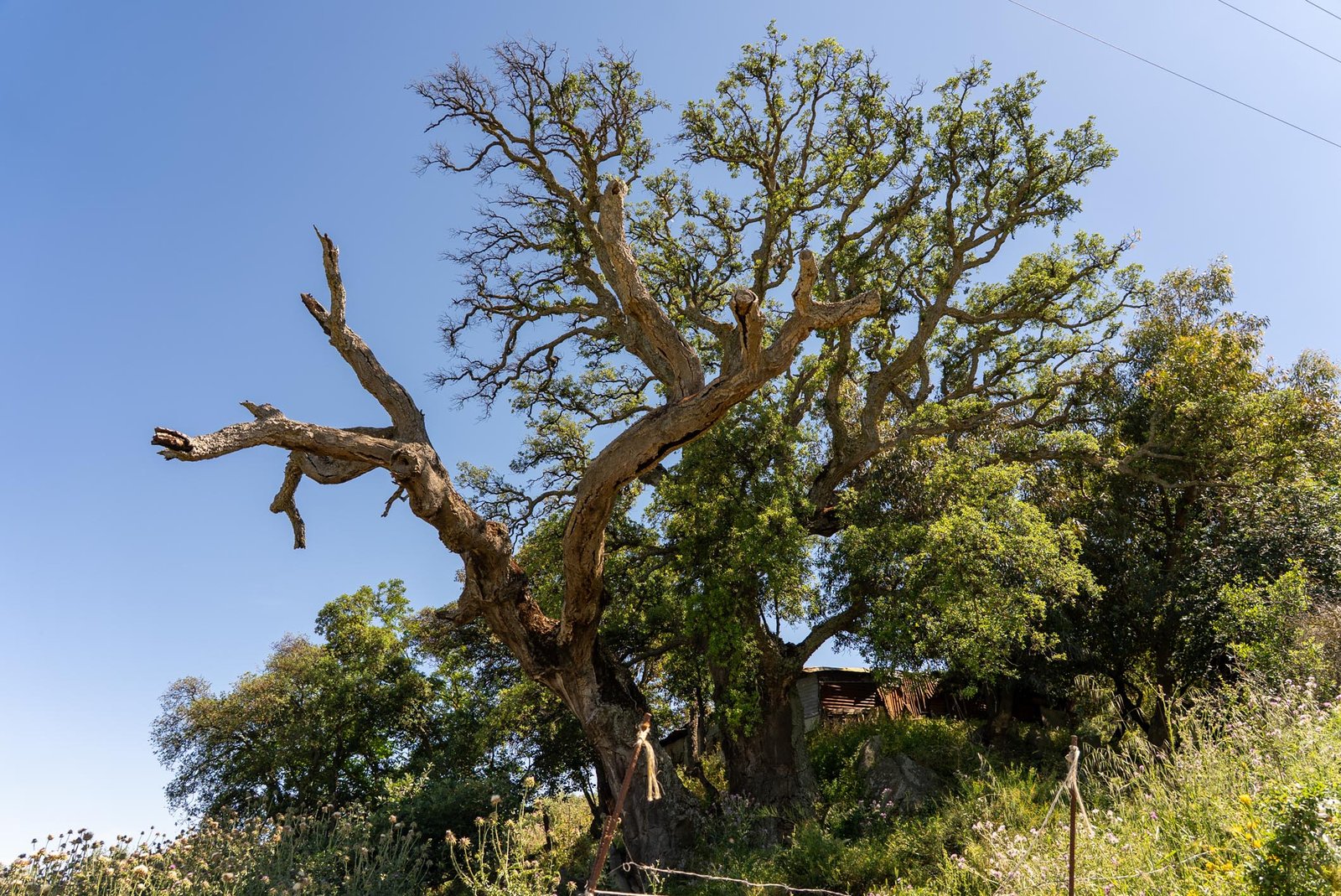 Una volta giunti ai piedi della quercia, ci si trova davanti a un gigante silenzioso che affascina e impone rispetto: il tronco ampio e contorto, le radici che affondano nella terra come braccia ancorate alla memoria del tempo, le fronde che si innalzano verso il cielo come se volessero raccontare storie antiche di vento, pioggia e sole.